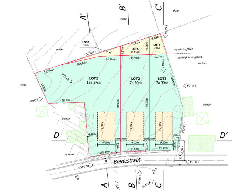 Plannen, verkavelingsvergunning, stedenbouwkundige voorschriften ter inzage op het kantoor, evenals een overzicht van de kosten verbonden aan het verkavelingsdossier.